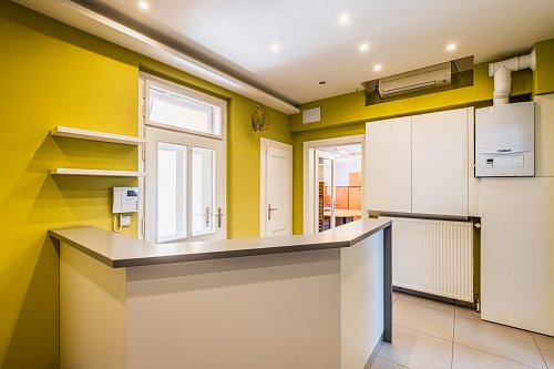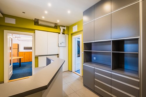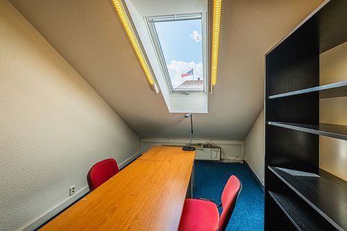 Exkluzivní kanceláře s vlastní recepcí, kuchyňkou a sociálním zařízením jsou situovány v poslední patře cihlového domu.