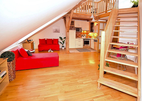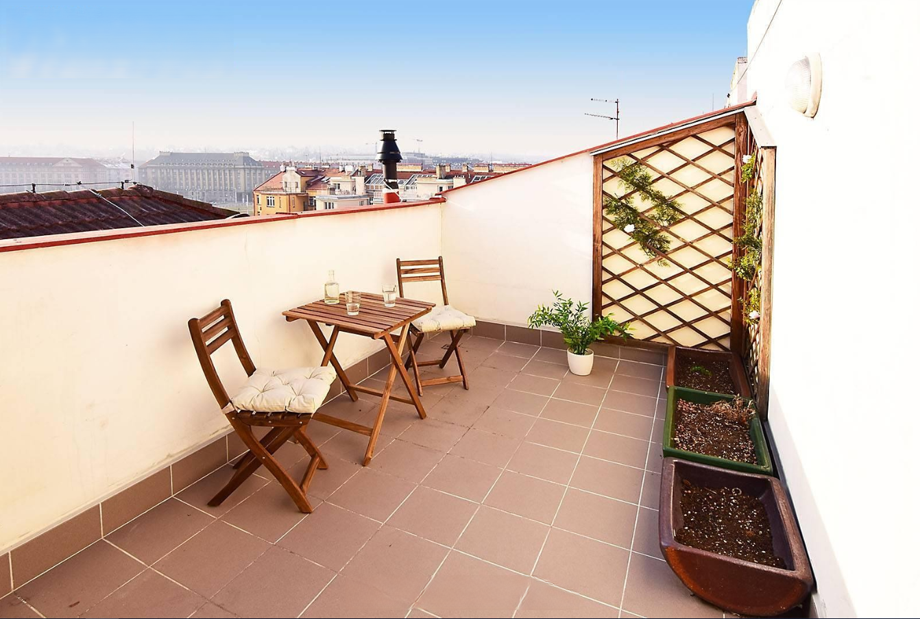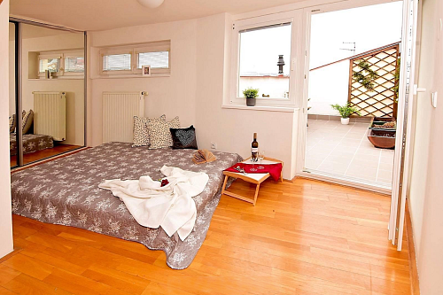 Exkluzivně nabízím k pronájmu útulný půdní mezonetový byt 2+kk (45 m2) s atraktivní terasou (8 m2) s výhledem na Vítězné náměstí a Petřínskou rozhlednu.