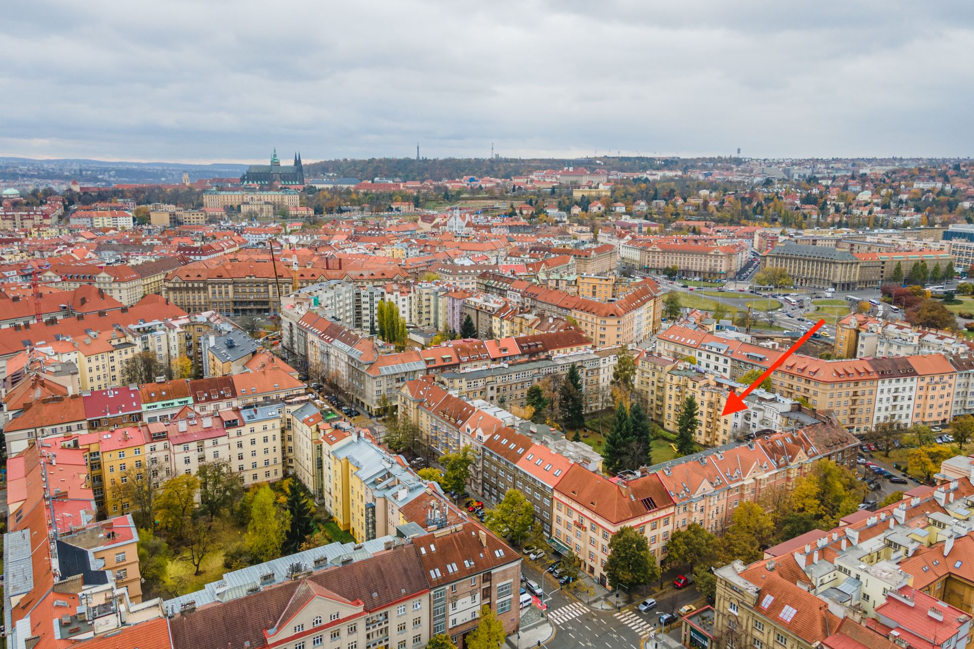 Dům, kde se byt nachází, je situovaný ve vyhledávané a příjemné lokalitě pražské Bubenče (ulice Národní obrany) s vynikající dopravní dostupností (stanice metra "A" Dejvická – 4 min. chůze, centrum metropole 10min).