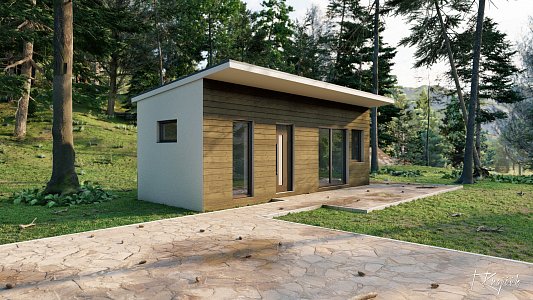 Dům TinyLiving o rozloze 20 m² s dispozicí 2+kk nabízí útulné bydlení pro jednotlivce či malou domácnost. Skládá se z obývacího pokoje spojeného s kuchyň ským koutem, samostatné ložnice a koupelny. Navzdory své kompaktní velikosti poskytuje dostatek prostoru pro základní bydlení a pohodlí. Ideální volba pro ty,